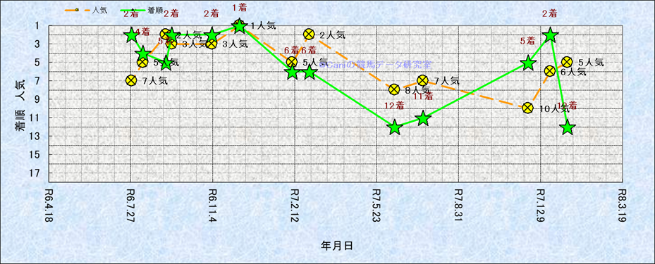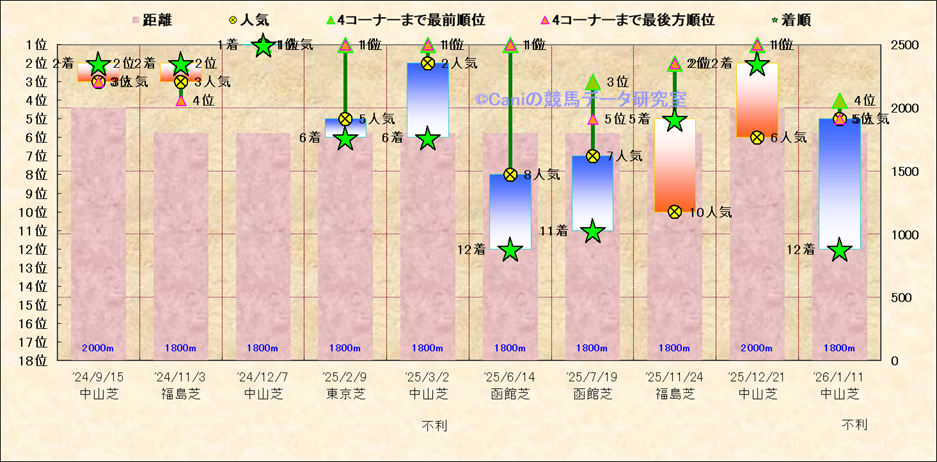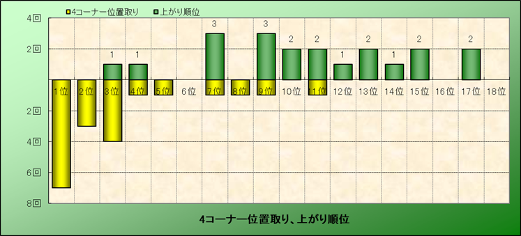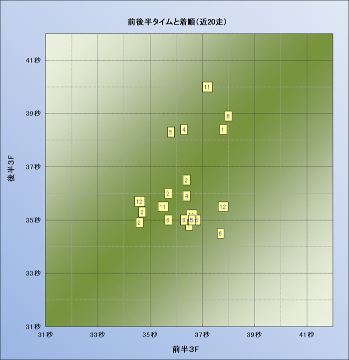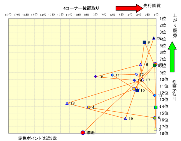 脚質解析 近20レースの4コーナーでの位置取りと上がり順位(頭数補正後) |
