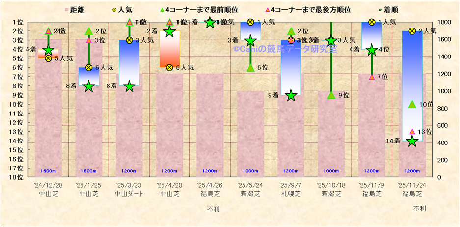 近10走 人気−着順-位置取りの推移 |