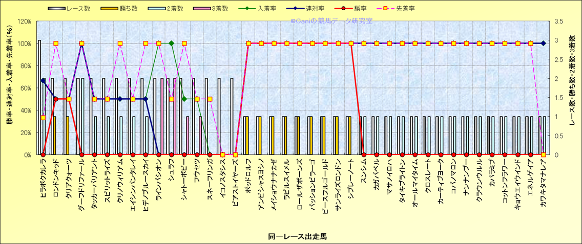 ライバル(相性)解析 同一レースに下記馬が出走した場合の成績とその馬に先着する先着率 |