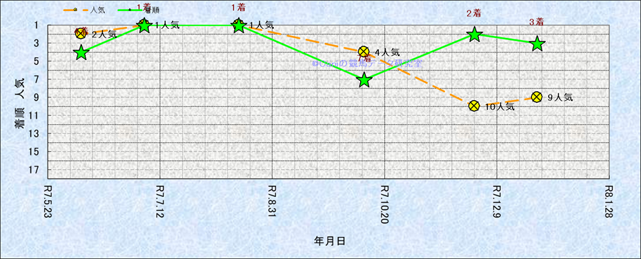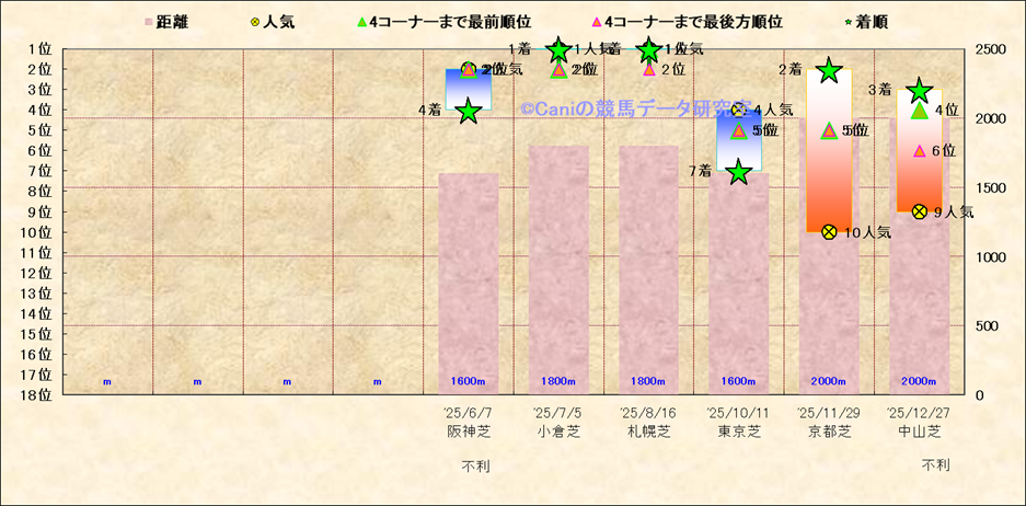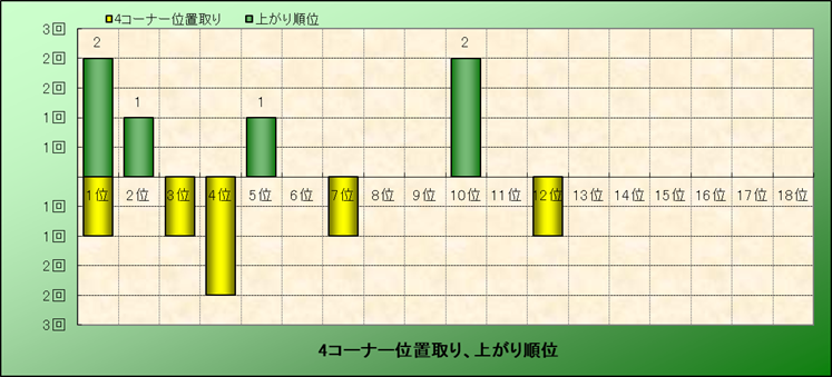 脚質解析 近20レースの4コーナーでの位置取りと上がり順位(頭数補正後) |