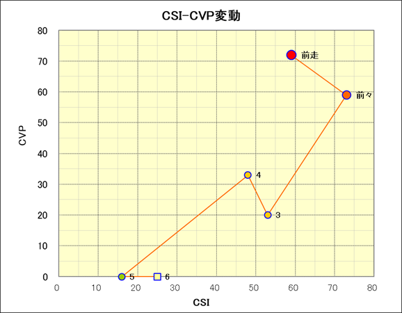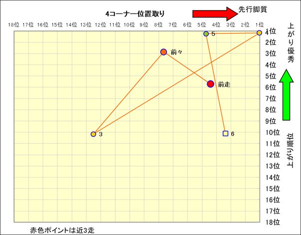 近走における4コーナーでの位置取りと上がり順位(頭数補正後) |