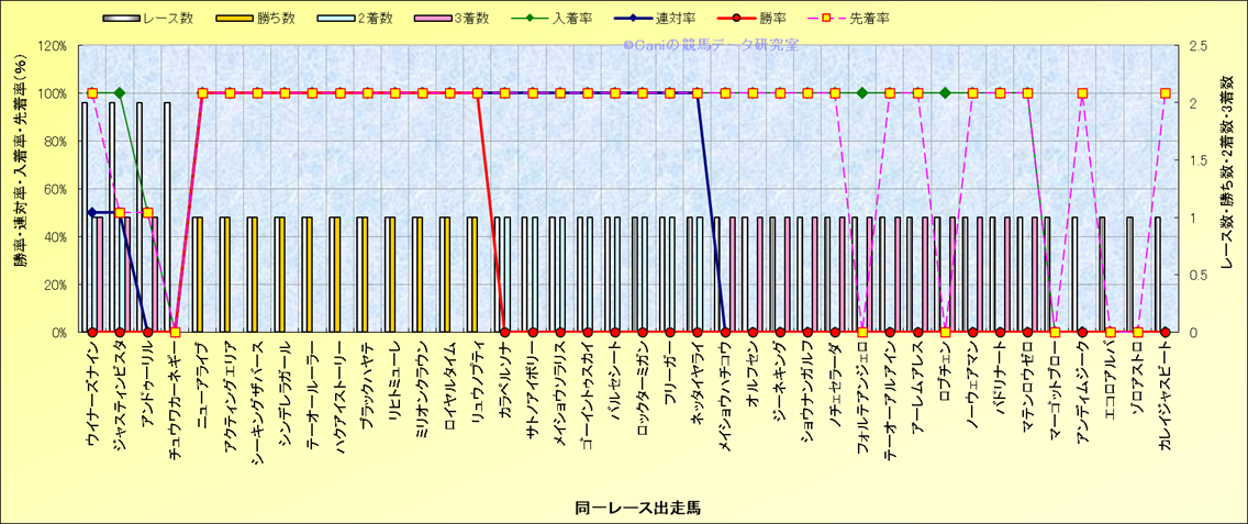 ライバル(相性)解析 同一レースに下記馬が出走した場合の成績とその馬に先着する先着率 |