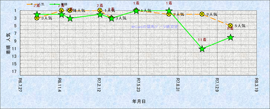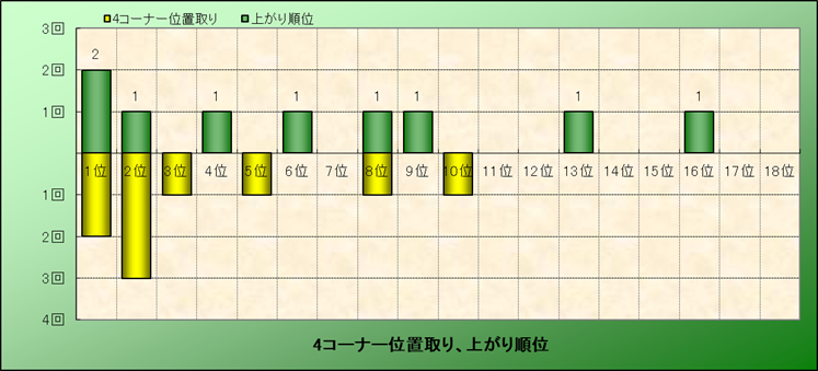 脚質解析 近20レースの4コーナーでの位置取りと上がり順位(頭数補正後) |