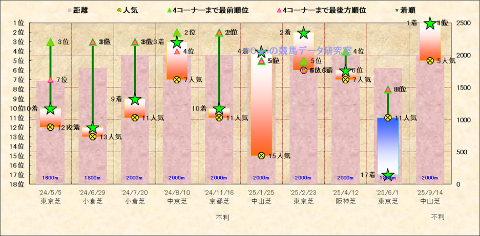 近10走 人気−着順-位置取りの推移 |