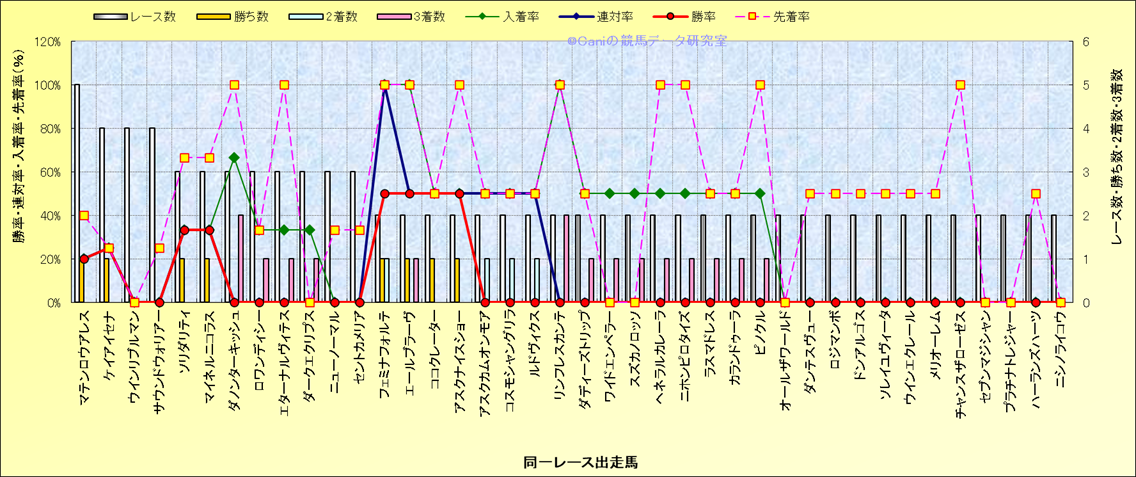 ライバル(相性)解析 同一レースに下記馬が出走した場合の成績とその馬に先着する先着率 |