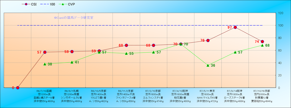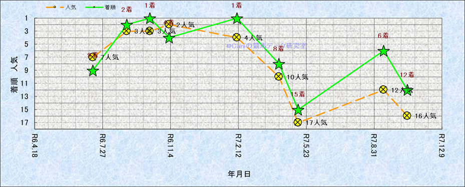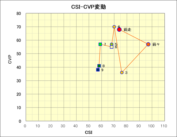近走における4コーナーでの位置取りと上がり順位(頭数補正後) |