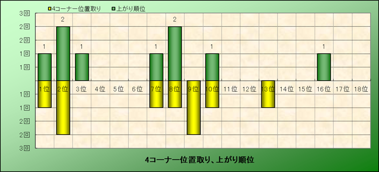 脚質解析 近20レースの4コーナーでの位置取りと上がり順位(頭数補正後) |