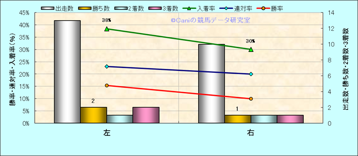 コース、最後の直線の高低差別成績(平地) |