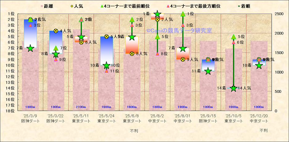 近10走 人気−着順-位置取りの推移 |