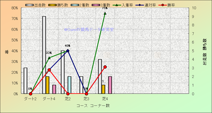 コース、コーナー数別成績(平地) |