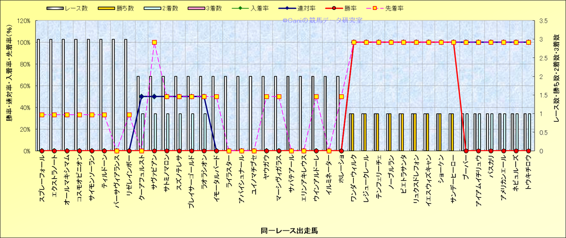 ライバル(相性)解析 同一レースに下記馬が出走した場合の成績とその馬に先着する先着率 |