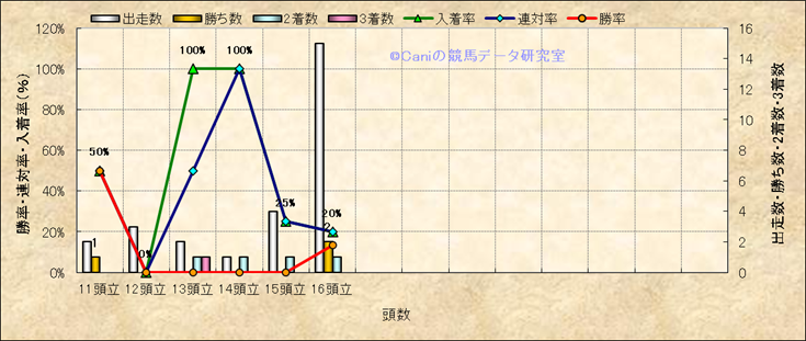 コース、最後の直線の高低差別成績(平地) |