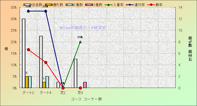 コース、コーナー数別成績(平地) |