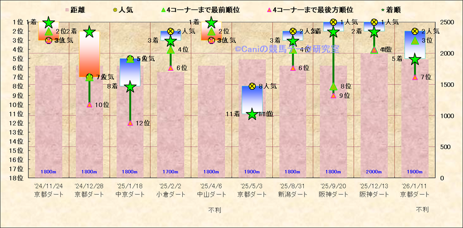 近10走 人気−着順-位置取りの推移 |