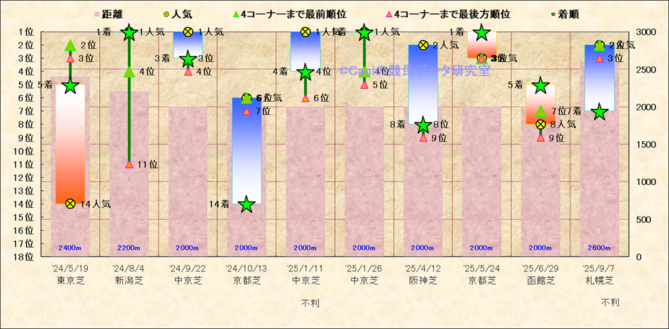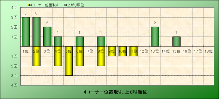 脚質解析 近20レースの4コーナーでの位置取りと上がり順位(頭数補正後) |