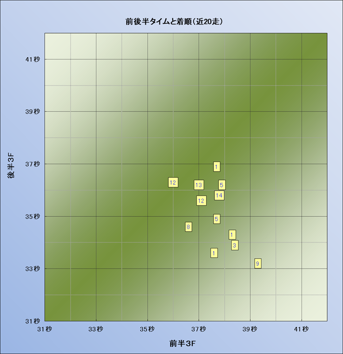 脚質解析 近20レースの4コーナーでの位置取りと上がり順位(頭数補正後) |