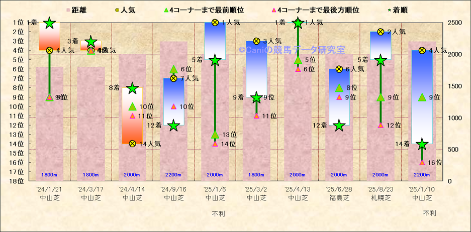 近10走 人気−着順-位置取りの推移 |