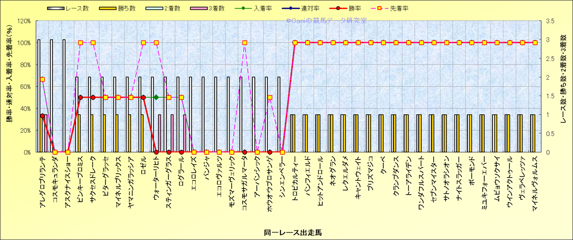 ライバル(相性)解析 同一レースに下記馬が出走した場合の成績とその馬に先着する先着率 |