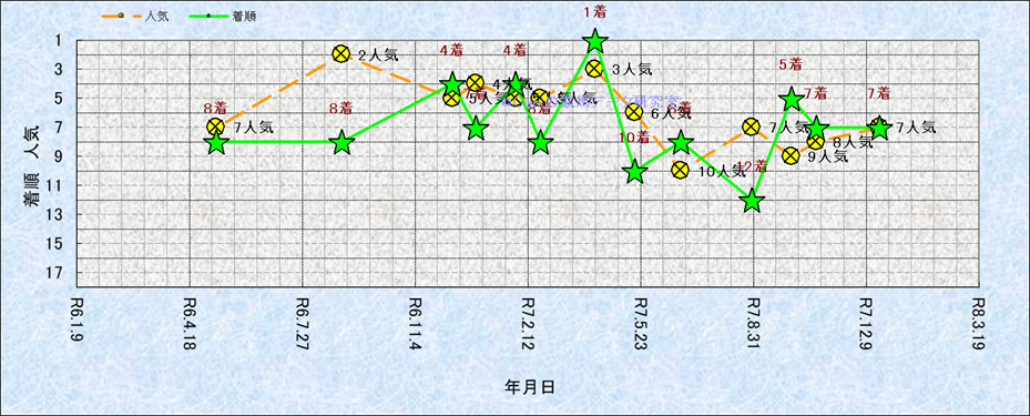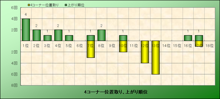 脚質解析 近20レースの4コーナーでの位置取りと上がり順位(頭数補正後) |