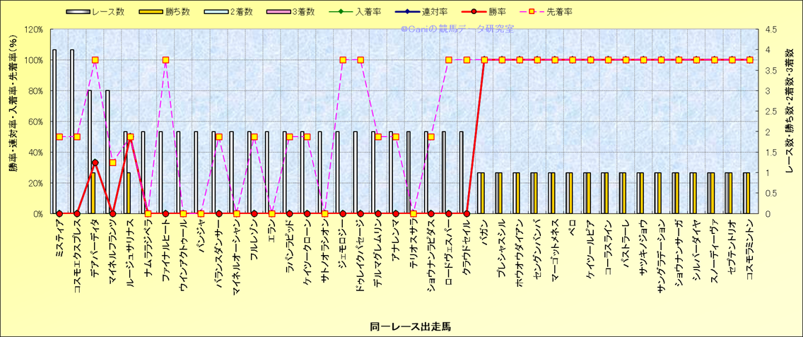 ライバル(相性)解析 同一レースに下記馬が出走した場合の成績とその馬に先着する先着率 |
