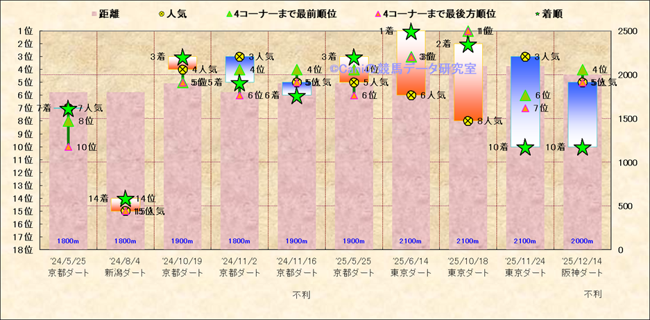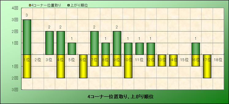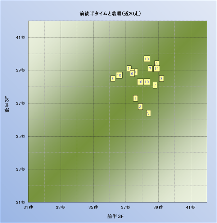 脚質解析 近20レースの4コーナーでの位置取りと上がり順位(頭数補正後) |