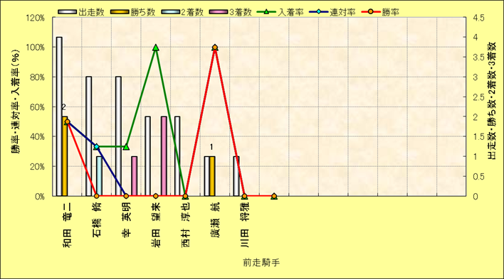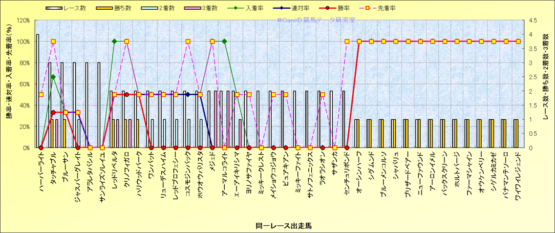 ライバル(相性)解析 同一レースに下記馬が出走した場合の成績とその馬に先着する先着率 |