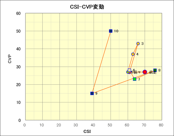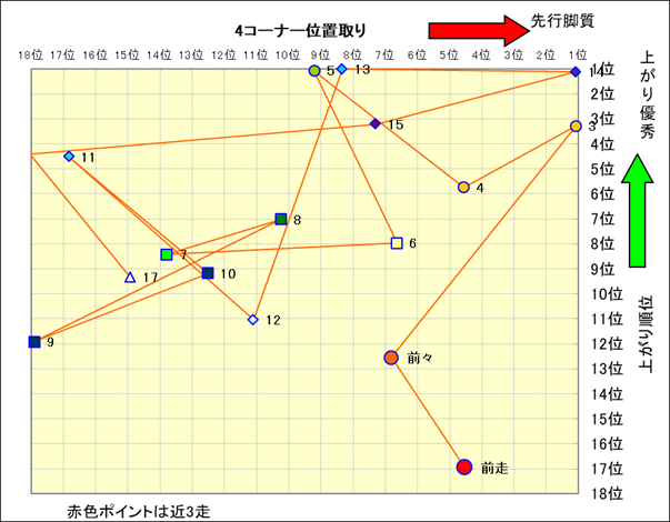 近走における4コーナーでの位置取りと上がり順位(頭数補正後) |