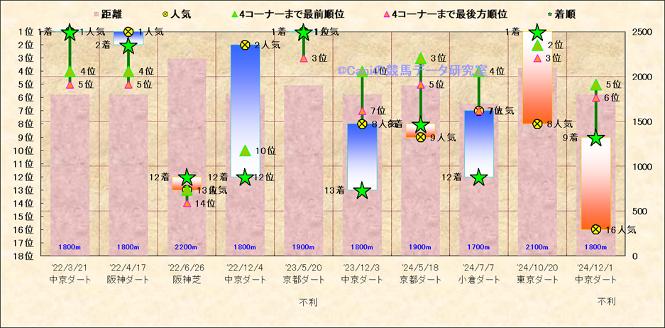 近10走 人気−着順-位置取りの推移 |