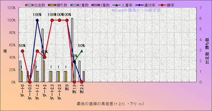 コース、最後の直線の高低差別成績(平地) |