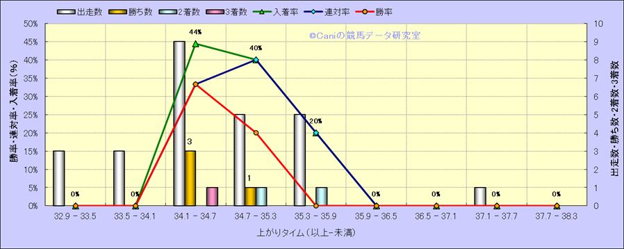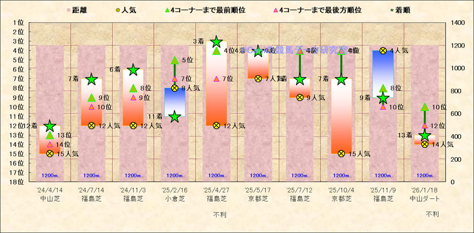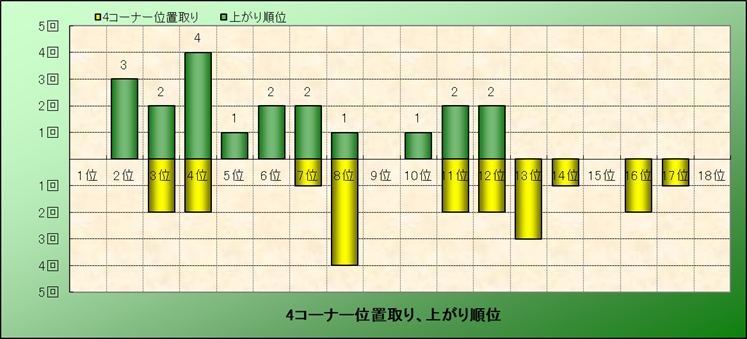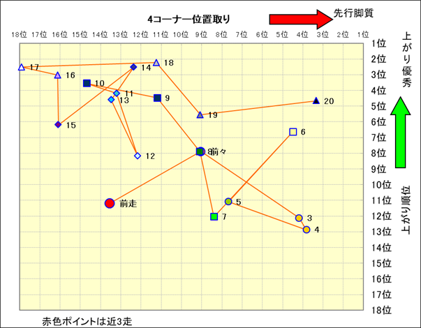 脚質解析 近20レースの4コーナーでの位置取りと上がり順位(頭数補正後) |