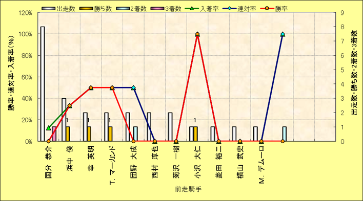 ライバル(相性)解析 同一レースに下記馬が出走した場合の成績とその馬に先着する先着率 |