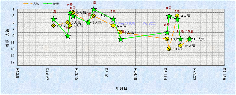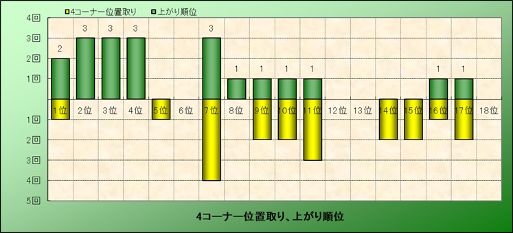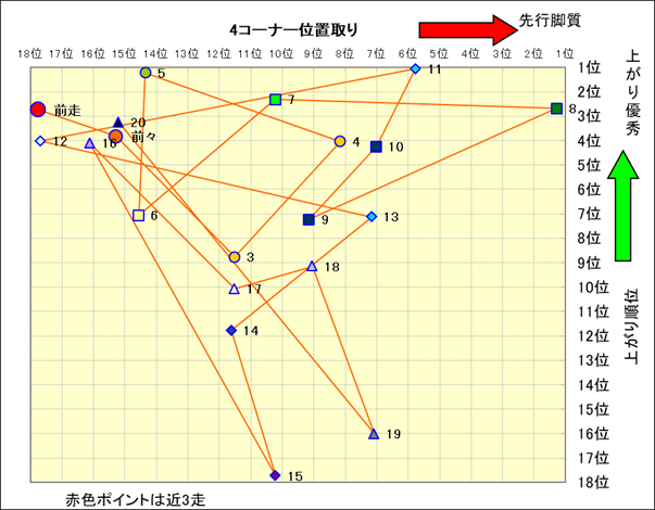 脚質解析 近20レースの4コーナーでの位置取りと上がり順位(頭数補正後) |