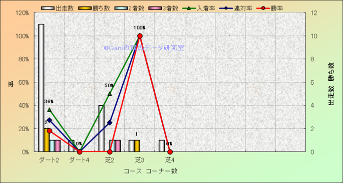 脚質解析 近20レースの4コーナーでの位置取りと上がり順位(頭数補正後) |