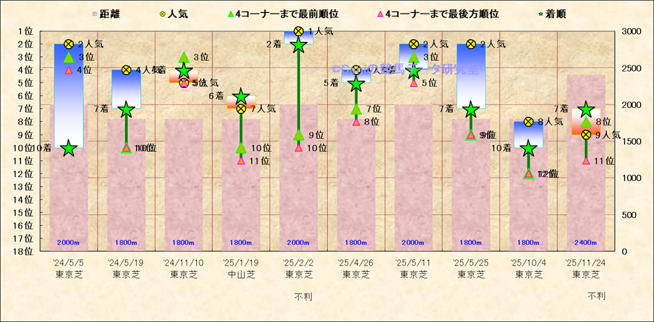近10走 人気−着順-位置取りの推移 |
