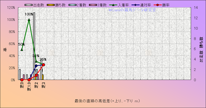コース、最後の直線の高低差別成績(平地) |
