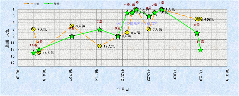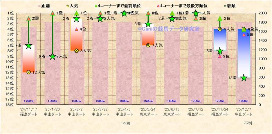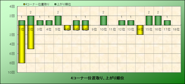 脚質解析 近20レースの4コーナーでの位置取りと上がり順位(頭数補正後) |