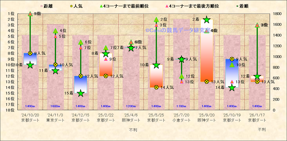近10走 人気−着順-位置取りの推移 |
