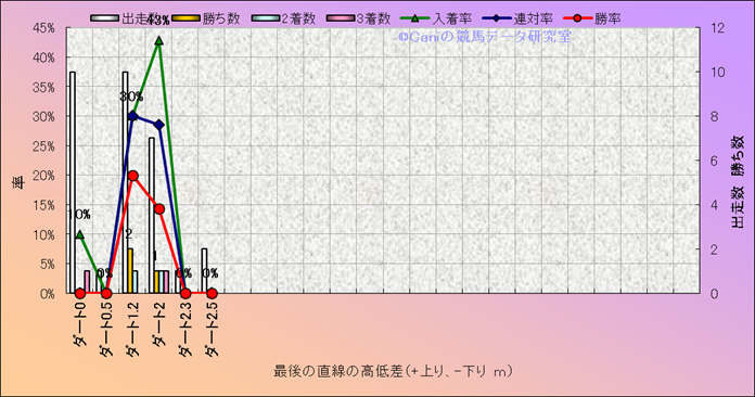コース、最後の直線の高低差別成績(平地) |