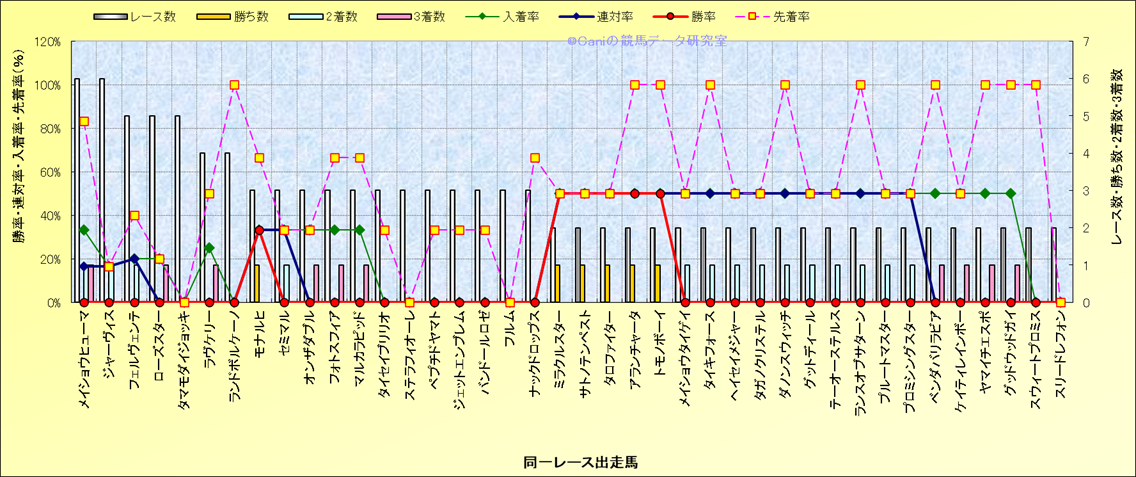 ライバル(相性)解析 同一レースに下記馬が出走した場合の成績とその馬に先着する先着率 |