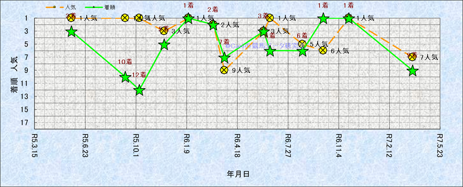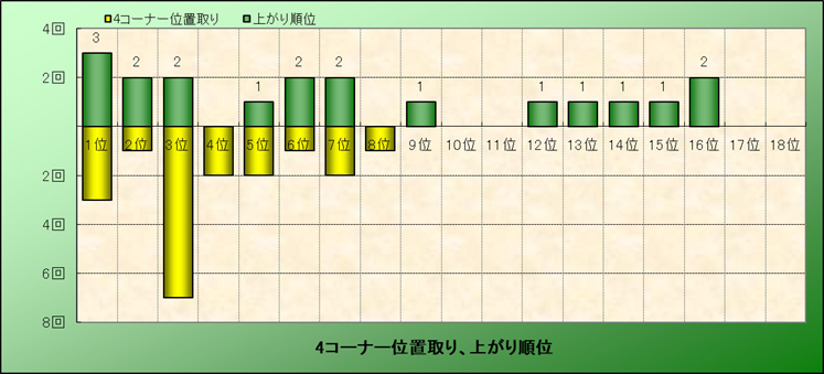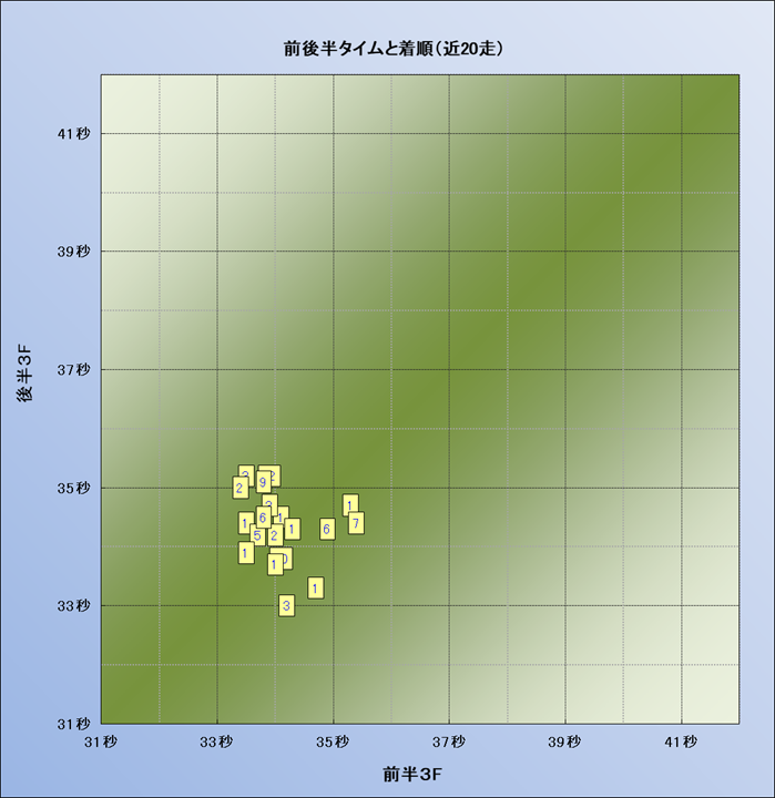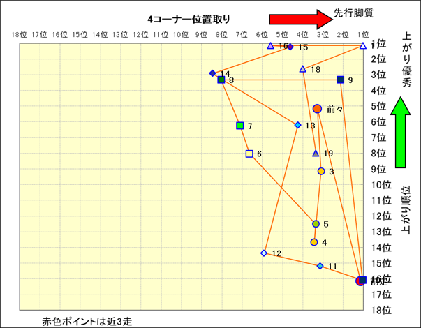 脚質解析 近20レースの4コーナーでの位置取りと上がり順位(頭数補正後) |