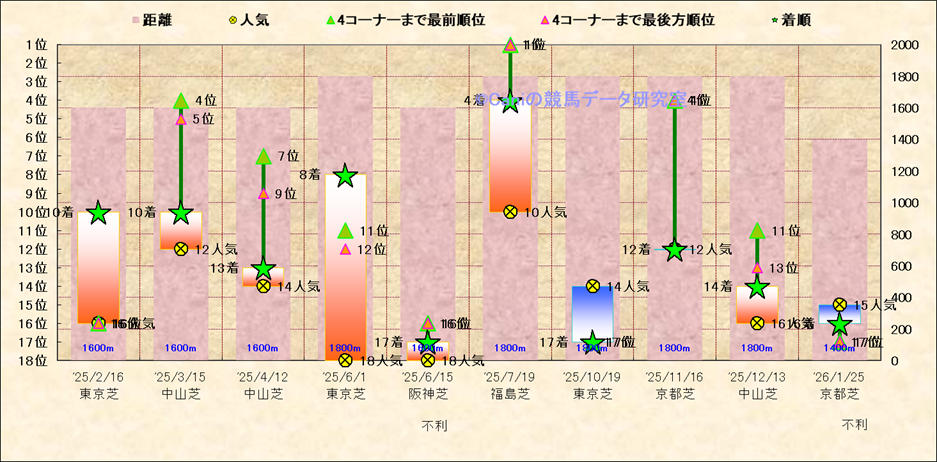 近10走 人気−着順-位置取りの推移 |