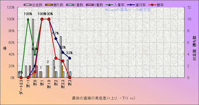 コース、最後の直線の高低差別成績(平地) |
