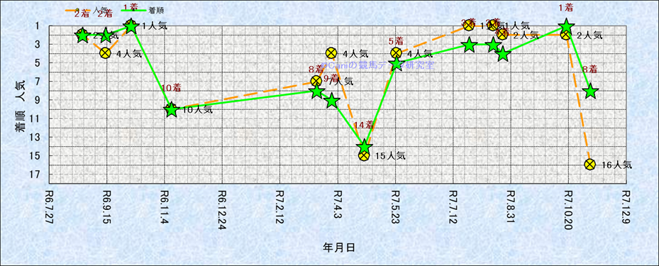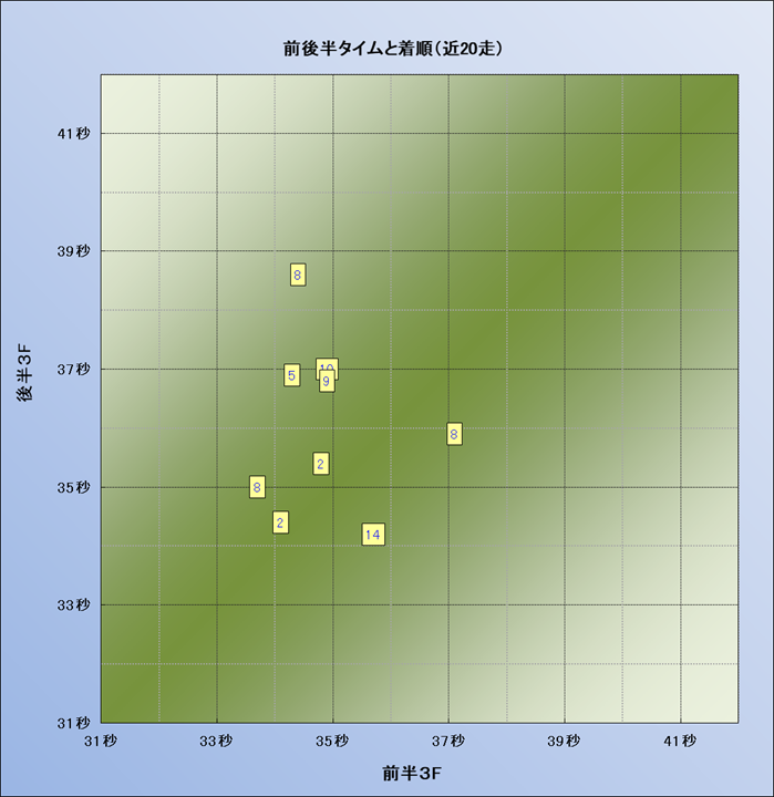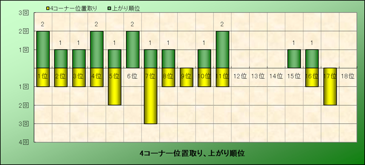 脚質解析 近20レースの4コーナーでの位置取りと上がり順位(頭数補正後) |
