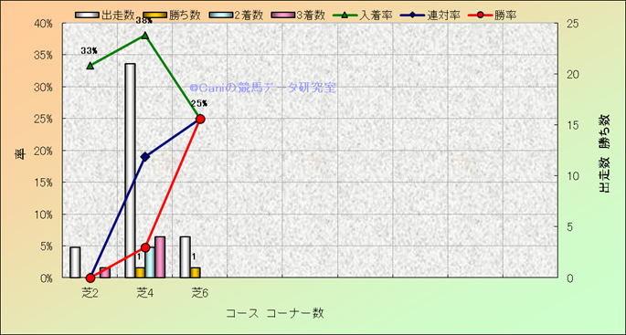 コース、コーナー数別成績(平地) |