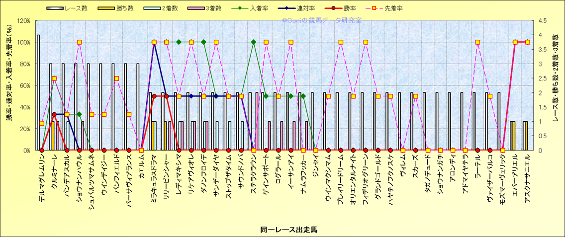 ライバル(相性)解析 同一レースに下記馬が出走した場合の成績とその馬に先着する先着率 |
