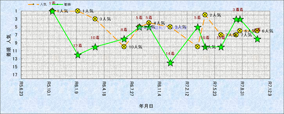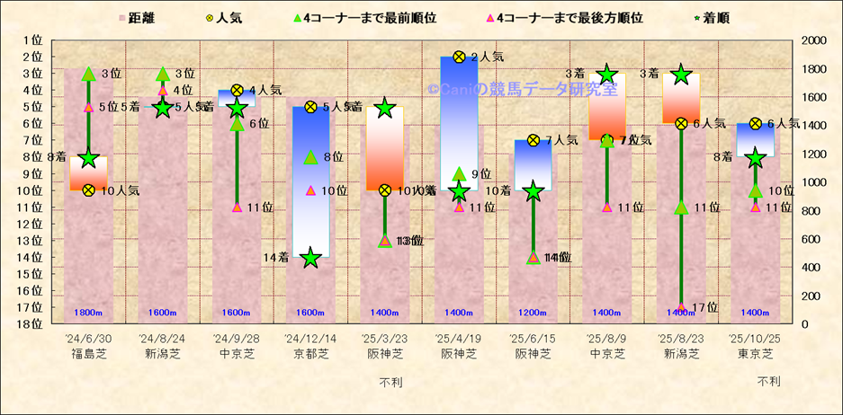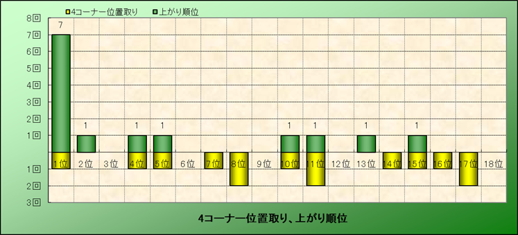 脚質解析 近20レースの4コーナーでの位置取りと上がり順位(頭数補正後) |