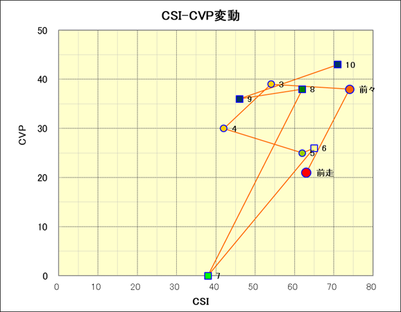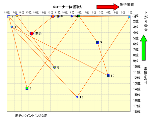 近走における4コーナーでの位置取りと上がり順位(頭数補正後) |