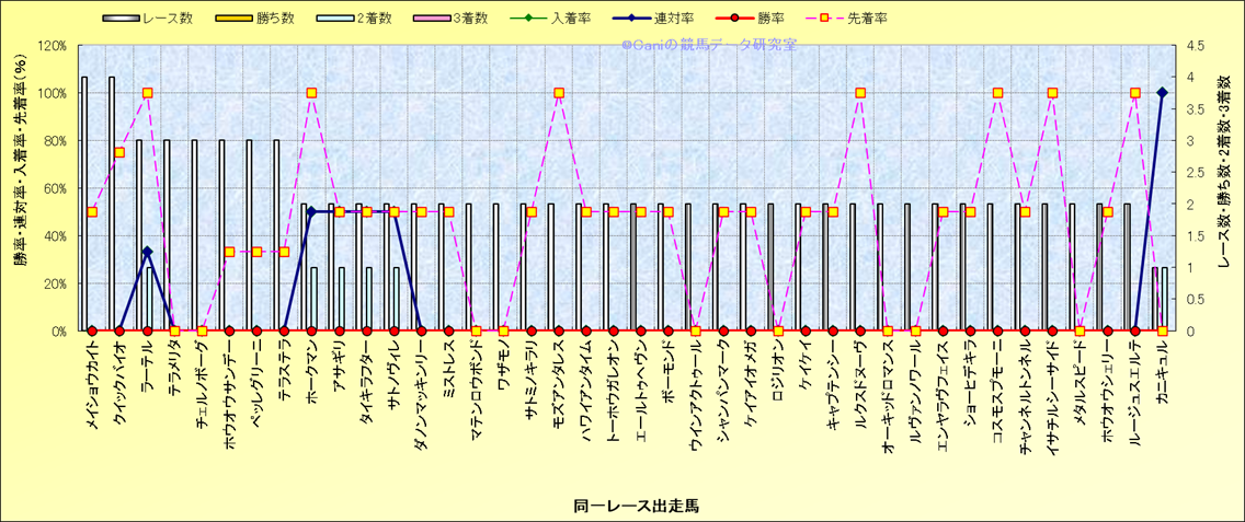 ライバル(相性)解析 同一レースに下記馬が出走した場合の成績とその馬に先着する先着率 |