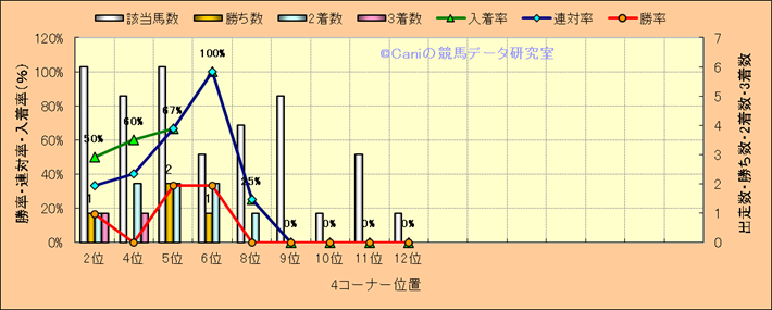 近走における4コーナーでの位置取りと上がり順位(頭数補正後) |
