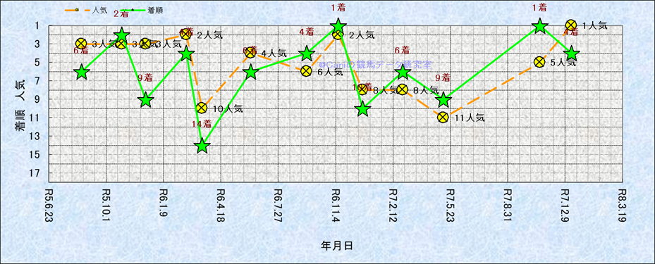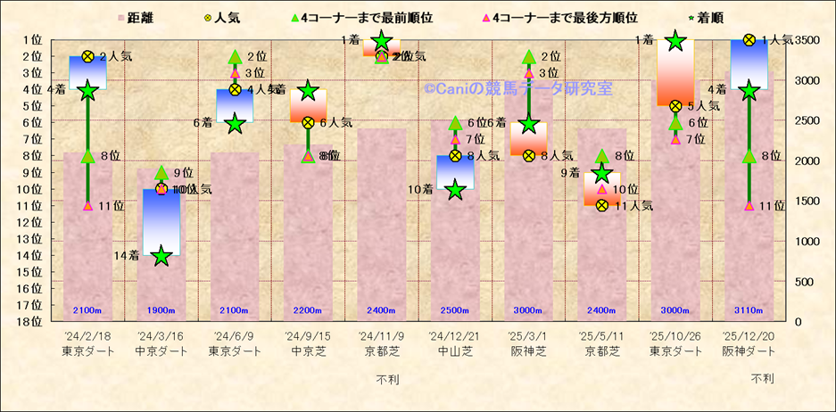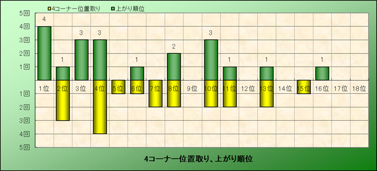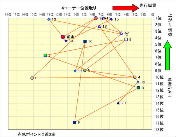 脚質解析 近20レースの4コーナーでの位置取りと上がり順位(頭数補正後) |